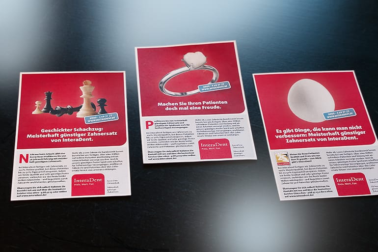 Für die InteraDent Zahntechnik GmbH gestalteten wir ein umfassendes Corporate Design, inklusive Styleguide und diverser Image- und Servicebroschüren. Näheres hierzu finden Sie in den Kundenstimmen unter Referenzen.