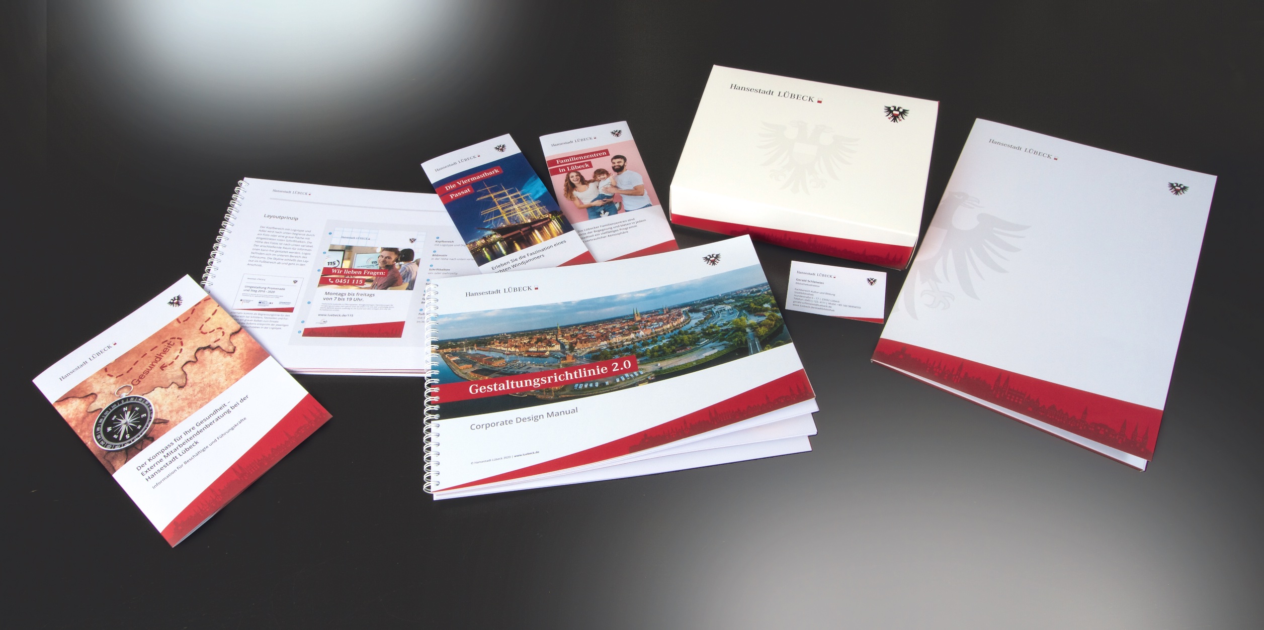 Im Jahr 2020 konnten wir die Hansestadt Lübeck als Kunden gewinnen. Seitdem haben wir das Corporate Design der Hansestadt überarbeitet. In der Gestaltungsrichtlinie 2.0. – dem neuen Styleguide – finden sich alle relevanten Vorgaben zu Dachmarke, Hausfarben, Typografie und Piktogrammen, ein übergeordnetes Layoutprinzip sowie Gestaltungsvorgaben und Templates für Broschüren, Plakate, Office-Anwendungen und Wegeleitsysteme. Auch der Intranet und Internet wurden an die von uns entwickelte Richtlinie angepasst. www.luebeck.de